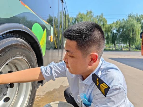 開朗的他說:“603路線路比較長(zhǎng),經(jīng)過修路路段比較多,車身、輪胎容易臟,每次到站休停,我都會(huì)重新把車輪擦一遍,再把車內(nèi)衛(wèi)生打掃一遍,最近天氣比較熱,每次干完活渾身像洗了澡,但既然干了這個(gè)工作,就要擔(dān)起責(zé)任,努力為市民提供舒適的乘車環(huán)境?!?/span>