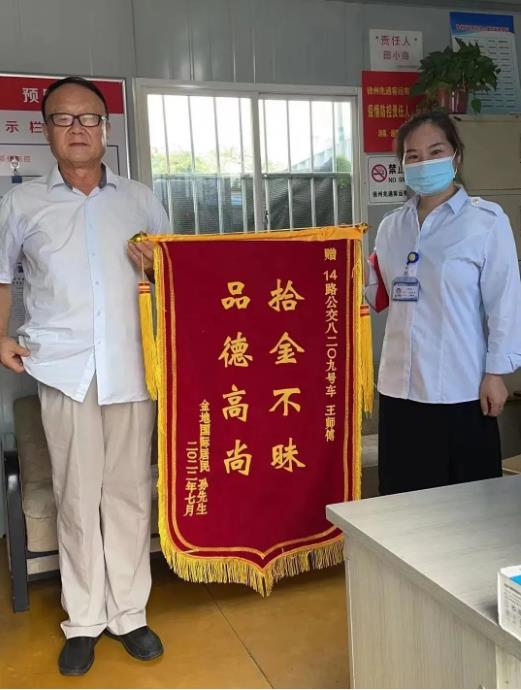 “在這個(gè)智能時(shí)代,手機(jī)丟了真的是寸步難行,感謝14路駕駛員王師傅幫我找到丟失的手機(jī)?!?月29日,市民孫先生手持錦旗來(lái)到淮海花木城調(diào)度室,對(duì)王師傅拾金不昧的高尚品德表示感謝。