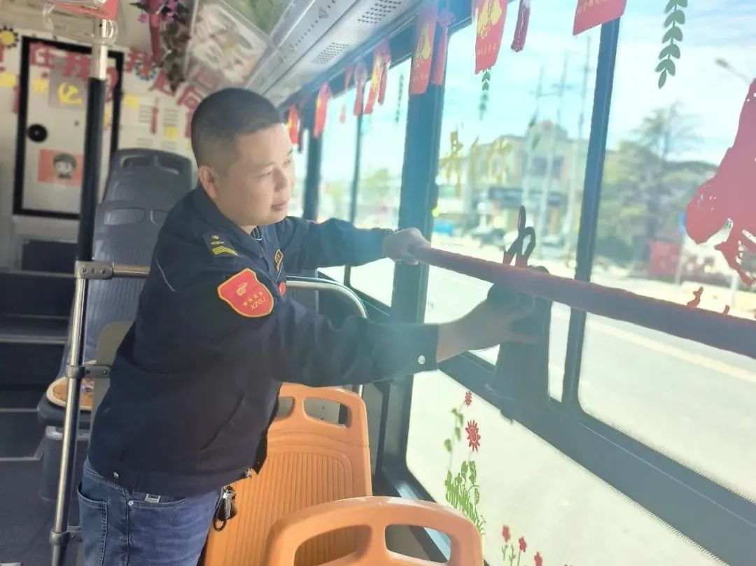為了給乘客一個(gè)舒適的乘車環(huán)境,他總是想辦法把車輛布置得很溫馨。冬天他在車上張貼了紅色的窗花,在扶手上纏上暖暖的紅絲絨。春天張貼了柳葉、花草,讓車廂充滿春天的氣息。為了讓大家感受到雷鋒精神,他在車內(nèi)制作了以雷鋒精神為主題的標(biāo)語、拉手,在車前放置了便民箱,為乘客提供暈車藥、創(chuàng)可貼、針線包等物品。為慶祝建黨百年,王石龍把車廂裝扮成紅色宣傳車,添置了紅色小人書,自費(fèi)做了燈箱畫報(bào),并放置了醫(yī)藥箱、便民袋。在他的車廂里,可以讀到軍隊(duì)十大英模人物和雷鋒的先進(jìn)事跡,可以閱覽無償獻(xiàn)血宣傳畫報(bào)。今年國慶前期,王石龍自費(fèi)購買了小禮物贈與乘客,在清華中學(xué)定制公交上,王石龍還與同學(xué)生們一起,揮舞著國旗,共同慶祝祖國母親73歲華誕。