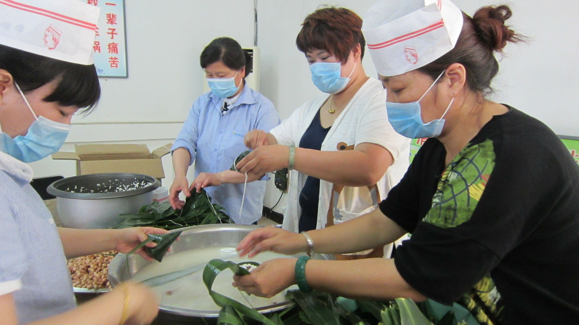 端午節(jié)前夕,各單位工會紛紛開展了“粽葉飄香、情濃端午”包粽子送關(guān)愛活動。公司工會共撥付經(jīng)費(fèi)1.2萬元,各單位組織員工自己采購、自己動手,共包粽子萬余個,均送到每位員工的手中。