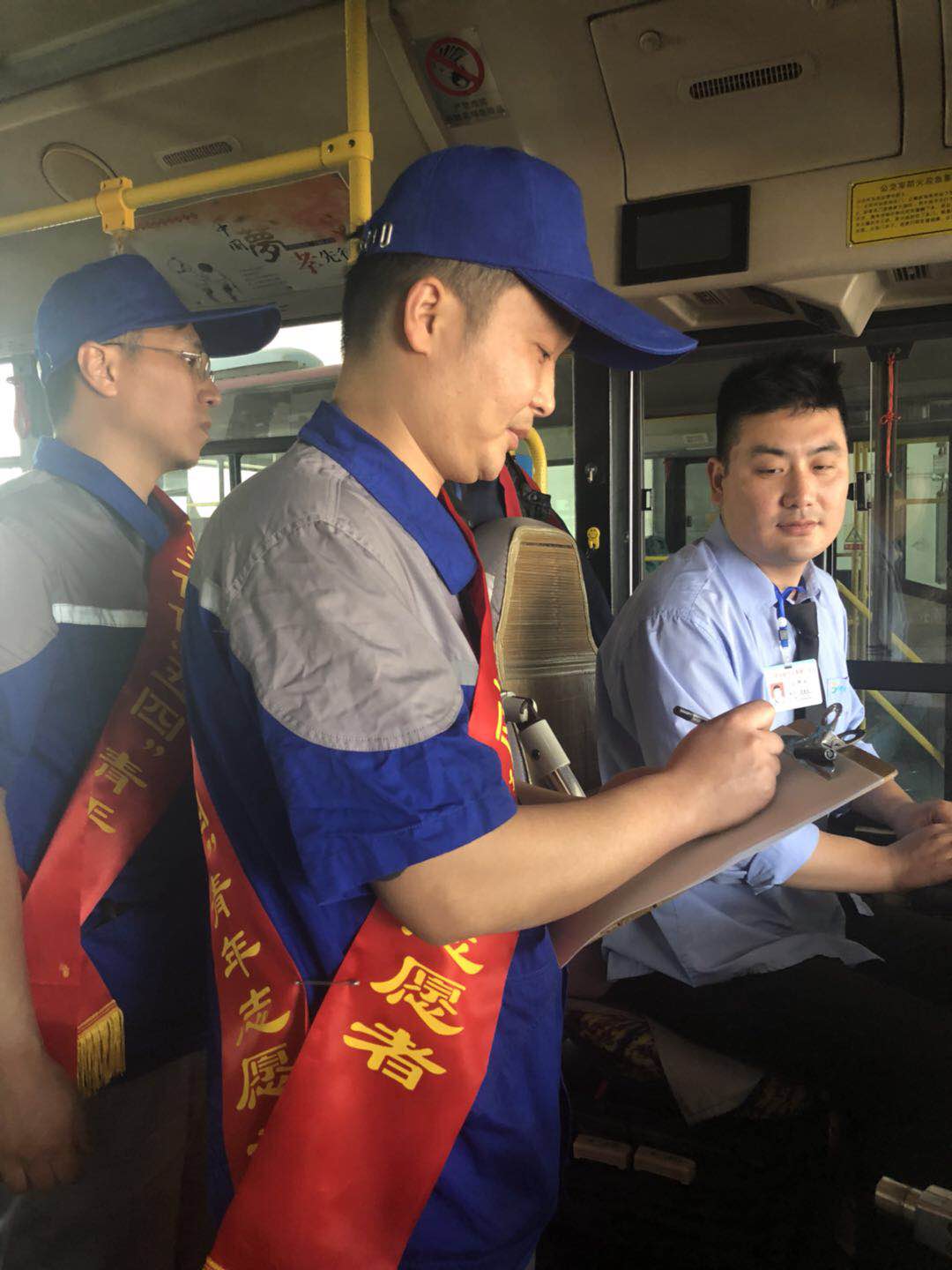 47名公交青年職工身披紅色綬帶,分組來(lái)到民樂(lè)園、風(fēng)華園、惠民小區(qū)、高鐵、淮西客運(yùn)站等居民小區(qū)、站臺(tái),發(fā)放《公交乘車指南》,邀請(qǐng)熱心乘客填寫《乘客滿意度調(diào)查表》,傾聽(tīng)市民的意見(jiàn)和建議。同時(shí),幫助市民安裝手機(jī)“掌上公交”APP,添加徐州公交微信公眾號(hào)方便市民及時(shí)了解公交信息動(dòng)態(tài),并贈(zèng)送紀(jì)念品。在高鐵等公交站臺(tái),公交青年看到需要幫助的乘客,還不時(shí)去攙扶老年乘客、幫助乘客搬運(yùn)行李等,在淮西客運(yùn)站車場(chǎng),保修青年志愿者幫助駕駛員檢修車輛,傾聽(tīng)駕駛員意見(jiàn)和建議。