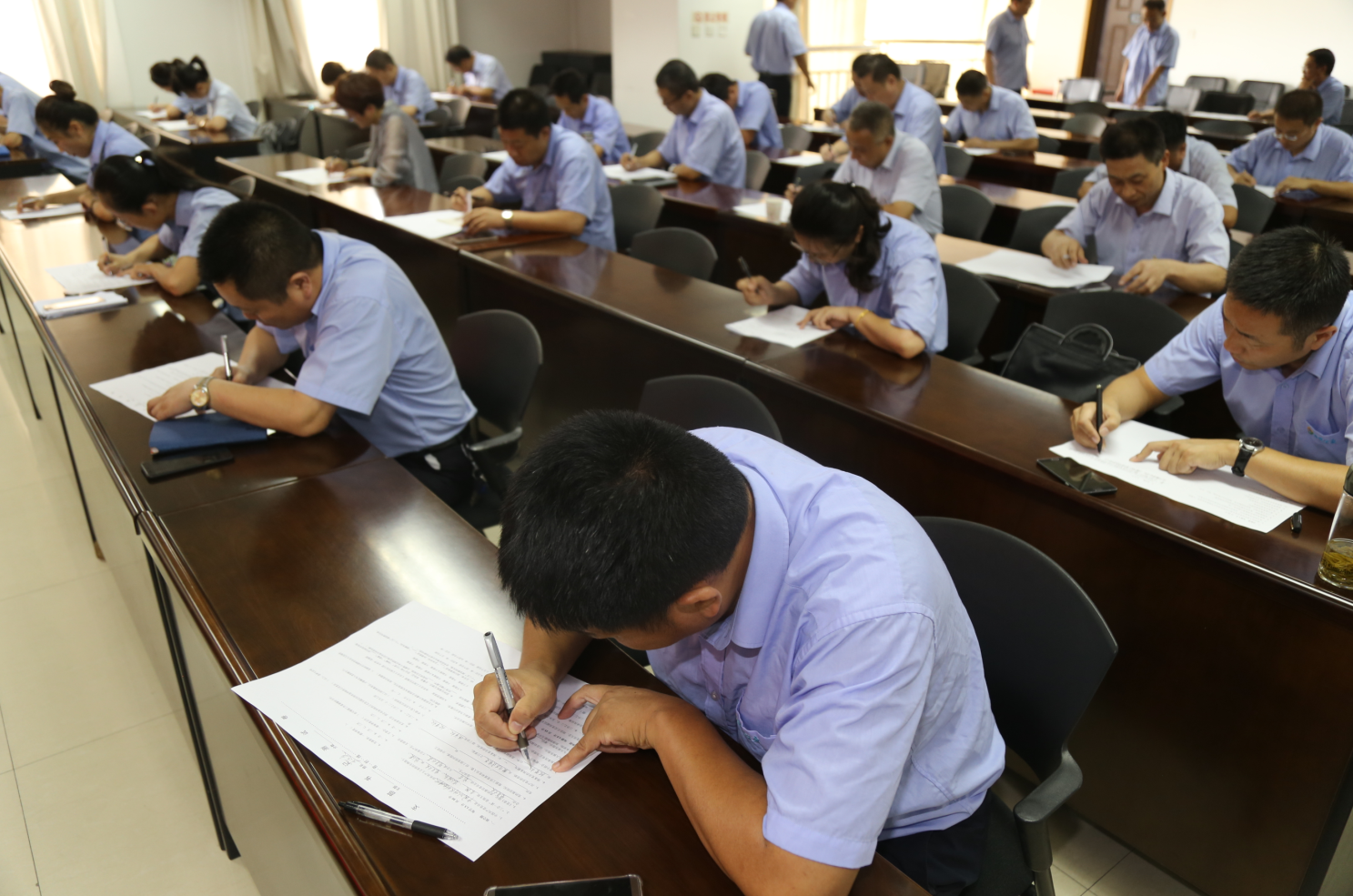 此次測試采取閉卷方式進(jìn)行,測試內(nèi)容包括《中國共產(chǎn)黨章程》、黨的十九大精神、支部黨建工作業(yè)務(wù)知識等方面內(nèi)容,設(shè)置了填空題、判斷題、單選題、多選題、簡答題和論述題。通過真學(xué)真考,以考促學(xué),確保黨務(wù)工作者把學(xué)習(xí)黨的十九大精神、黨務(wù)知識入腦入心。測試現(xiàn)場,全體人員認(rèn)真思考作答,在規(guī)定時(shí)間里全部完成答題。
