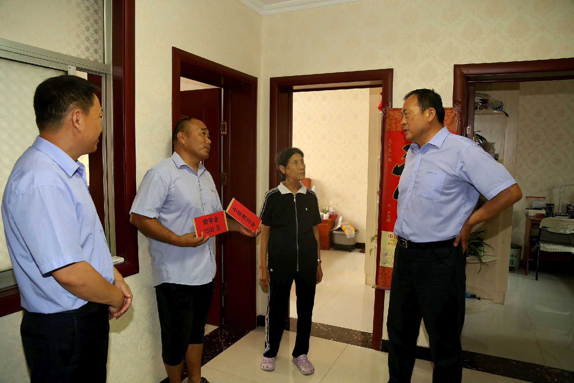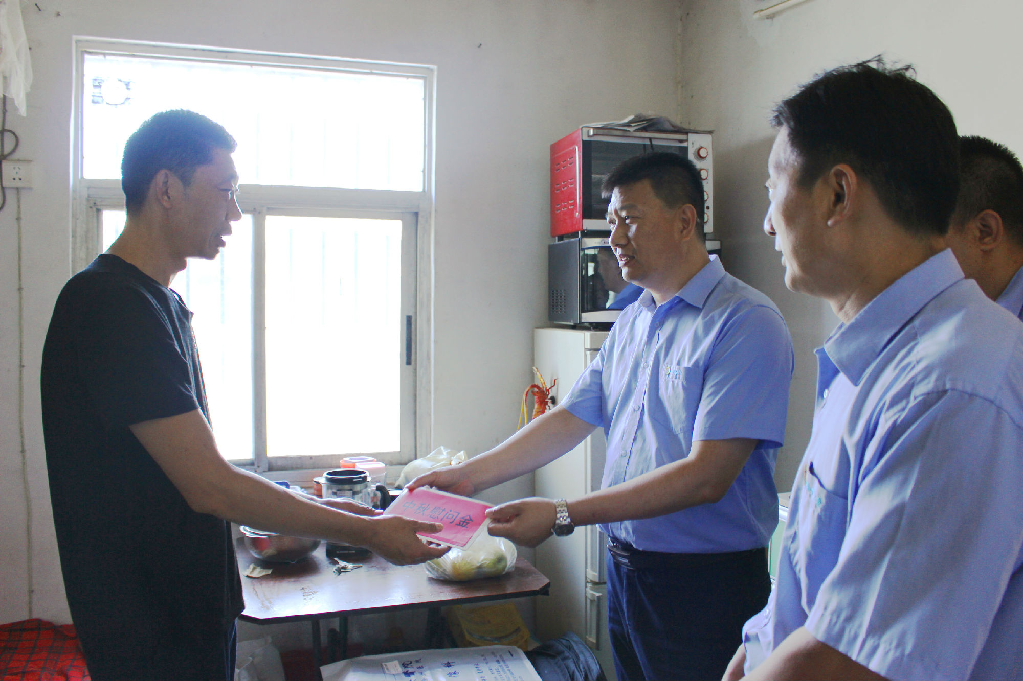 仲秋桂花浮玉,明月何皎皎,一年一度的中秋佳節(jié)即將來臨。9月5日上午,公司黨委書記、董事長杜紅軍,總經(jīng)理馮陸陸帶領(lǐng)公司班子成員開展“送溫暖”活動,將飽含深情厚誼的中秋節(jié)慰問金及助學(xué)金一一送到了公司困難職工手中。