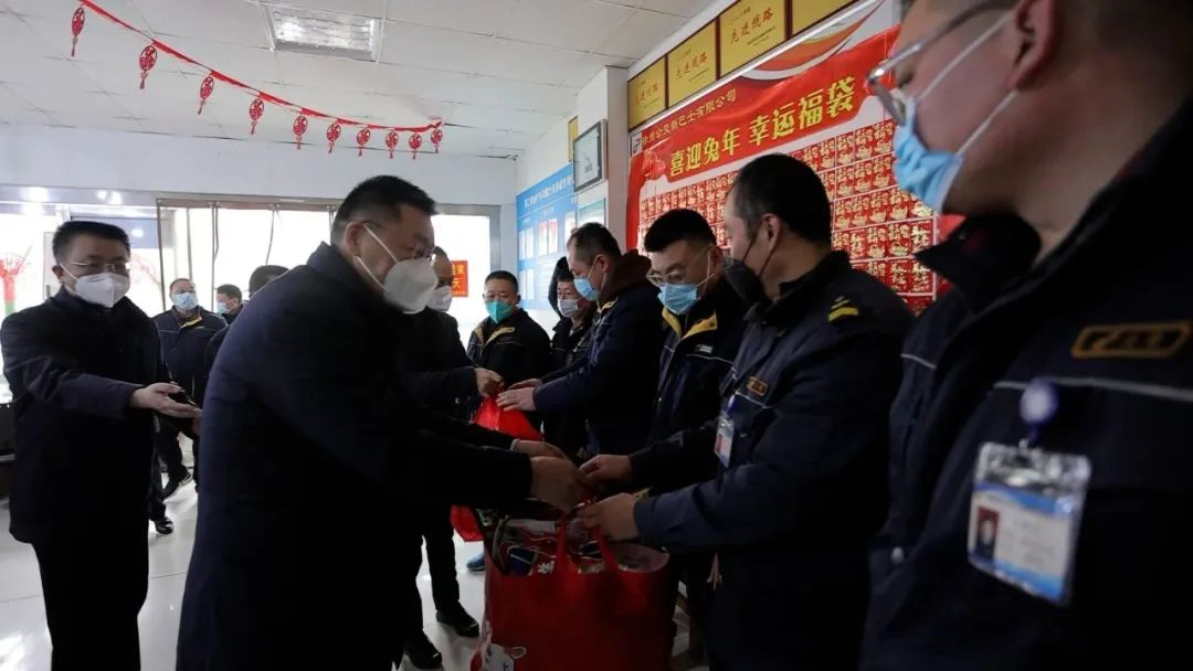 “大家辛苦了。今天是大年初一,正是萬家團(tuán)圓的時刻,你們?yōu)楸U铣鞘姓_\行,依然堅守在崗位上,我和檀總代表交控集團(tuán)黨委來看望大家,給大家拜年了,祝大家身體健康、闔家歡樂、萬事如意!”在新巴士公司調(diào)度室,賈泉涌與堅守崗位的一線駕駛員們逐一握手,對他們的辛勤付出表示感謝,并送去了節(jié)日的祝福。