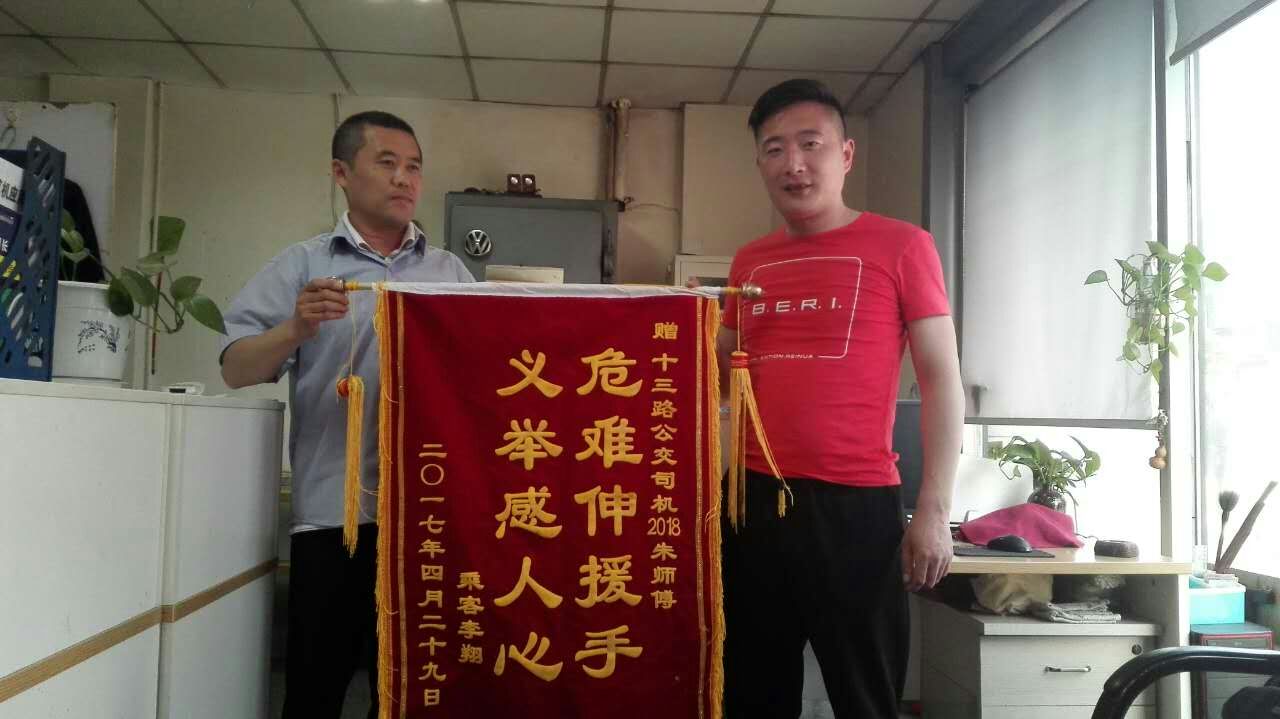 4月29日下午,13路調(diào)度室收到一面錦旗,表揚13路駕駛員朱輝見義勇為的行為。原來,4月26日下午13點左右,李先生孩子誤食過敏食物,導致全身過敏,李先生以為孩子只是一般過敏,應該沒什么大礙,便從唐溝乘坐13路車前往市二院,沒有乘坐出租車。當車輛行駛一段時間后,李先生發(fā)現(xiàn)孩子臉色越來越差,這時,急壞了的李先生立即求助駕駛員,駕駛員朱輝了解情況后,看到孩子病情嚴重,不能耽誤,在征求車上乘客的意見后,直接將公交車開到市二院,公交車化身救護車,為孩子贏得了寶貴的救助時間。孩子家長十分感激,在孩子好轉(zhuǎn)后,親自前來感謝。