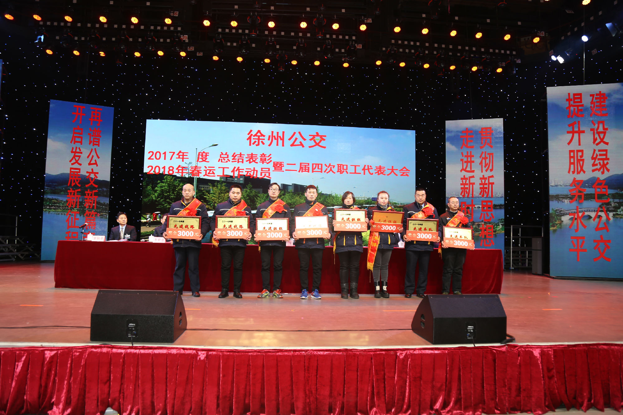 大會在莊嚴的國歌聲中拉開序幕。公司董事長、總經理杜紅軍首先作經理工作報告,對2017年“改革創(chuàng)新年”工作進行了全面總結:一、實施“同城同價”,優(yōu)化運營管理,實現服務水平新突破。連續(xù)第五年面向全市征集線路線網優(yōu)化意見近3000條,據此新辟優(yōu)化線路29條。二、深化資源共享,在互聯(lián)網+企業(yè)管理上譜寫新藍圖。繼續(xù)深化集中維修,推行集中例檢。論證實施支付寶、微信、銀行卡閃付等智能化移動支付方式。三、深化文明創(chuàng)建,打造優(yōu)秀公交,服務民生出行贏得新口碑。在國檢、省檢中未失一分,圓滿完成創(chuàng)建驗收任務。投訴總數和有責投訴同比實現“雙下降”。乘客表揚同比上升近20%。公司在2016年行風熱線上線單位滿意度評議投票中名列榜首。率先打造公交行業(yè)禮讓斑馬線嶄新形象,圓滿完成公交反恐防暴工作。四、著力綜合管理,聚合內生動能,增強企業(yè)發(fā)展新優(yōu)勢。重新修訂2012版管理制度匯編和新版《徐州公交獎懲條例》。五、踐行十九大精神,推進和諧發(fā)展,開創(chuàng)黨群工作新面貌。接著,杜總分析了工作中存在的問題,提出下步工作重點。一、建設現代化公交,提升經營管理水平,保障企業(yè)良性有序運行;二、踐行集約共享理念,深化科技應用,開創(chuàng)公交事業(yè)發(fā)展新局面;三、建設平安公交,提升服務口碑,展示文明公交新形象;四、踐行十九大精神,構建和諧公交,開啟黨群工作新面貌。