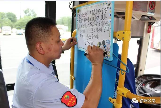 原來他已養(yǎng)成了習慣,在他的駕駛室后方掛著一塊白板,寫著乘車的溫馨提示語和天氣情況。每天他都會記錄下當天的天氣情況:“為了您的乘車安全,請不要隨意更換座位。感謝您的支持!2018年7月12日星期四,多云到晴,27~34攝氏度”,“特別是老年人、孩子,開車時換位子太危險了。”薛松解釋道。